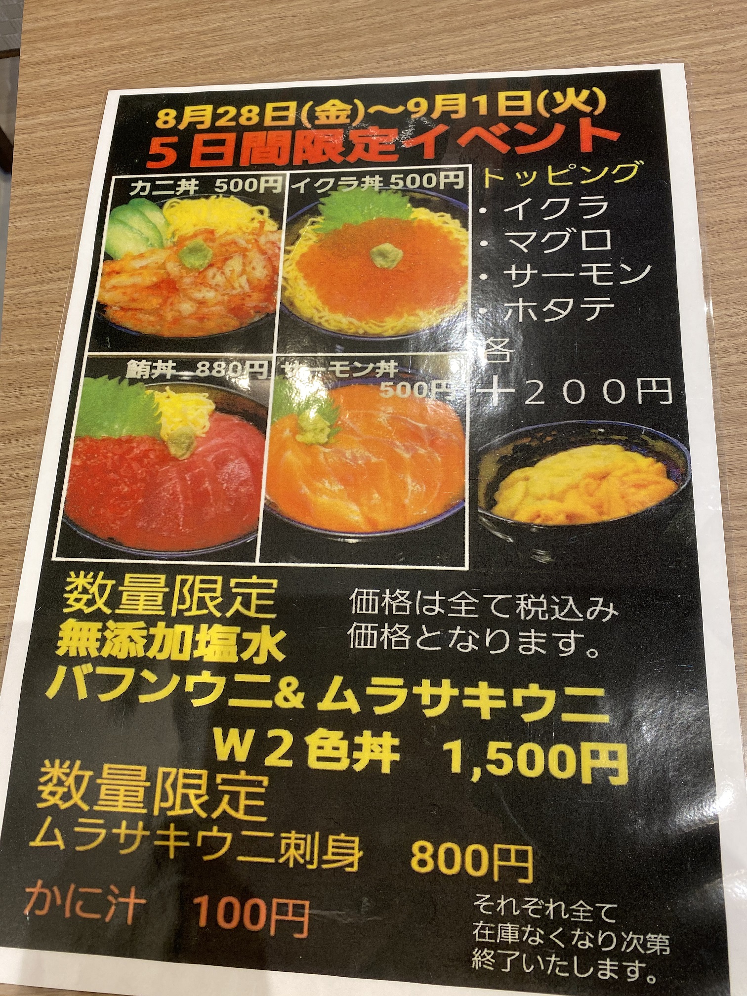 イクラ丼などが500円で食べれるイベントを8月28日~9月1日まで