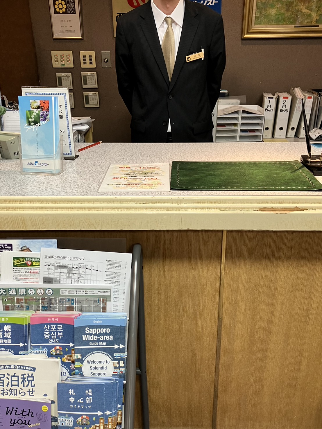 彼は当ホテル勤務が長くお名前は〇内さんです。