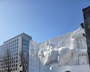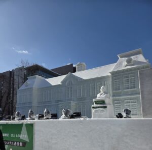 毎年、北海道の歴史ある建物の雪像がありますが、窓枠や屋根などしっかり作られていて遠くから見てもわかるので感動します。