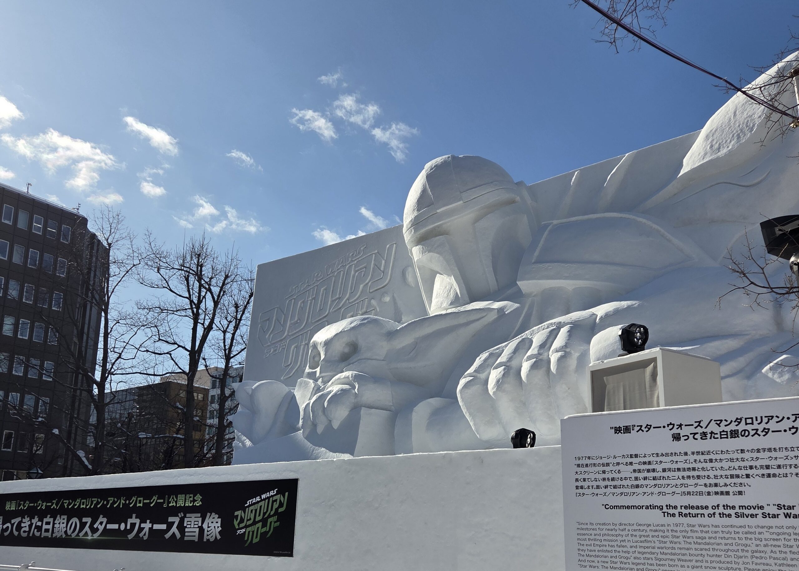 次も大雪像になりますが、スターウォーズ・マンダロリンアンドグローグーの雪像で斜めの写真で分かりにくいかなと思いましたが、立体感がある写真が取れたかなと思いただのせました。
